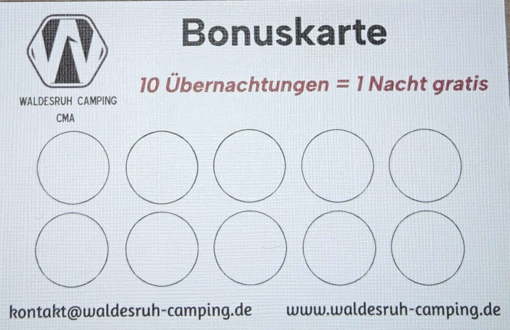 Pro Übernachtung gibt es einen Stempel. Nach 10 Übernachtungen bekommt ihr eine Übernachtung gratis.