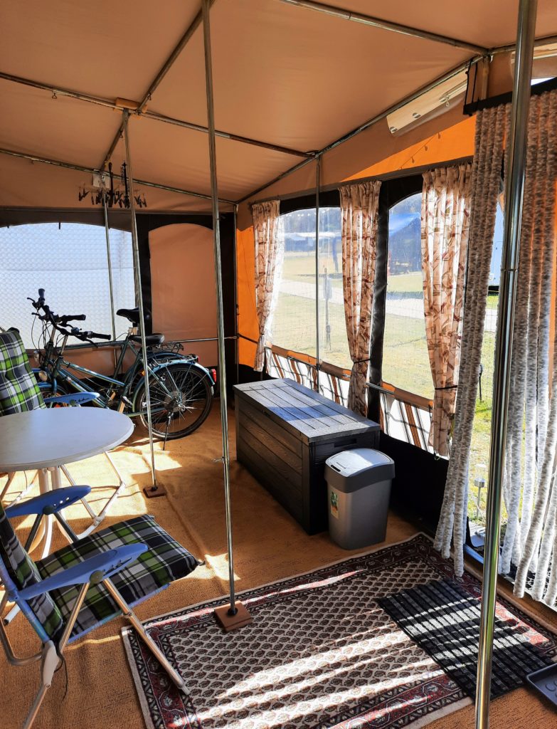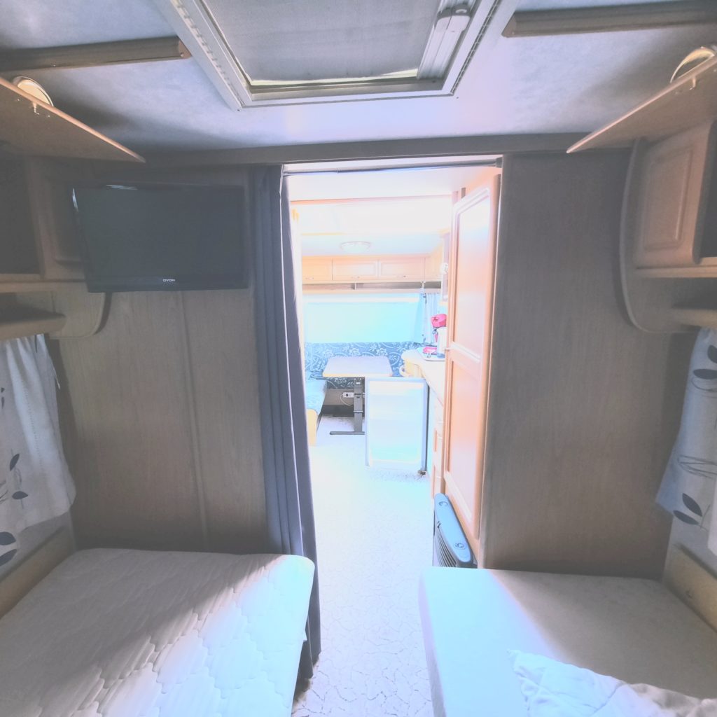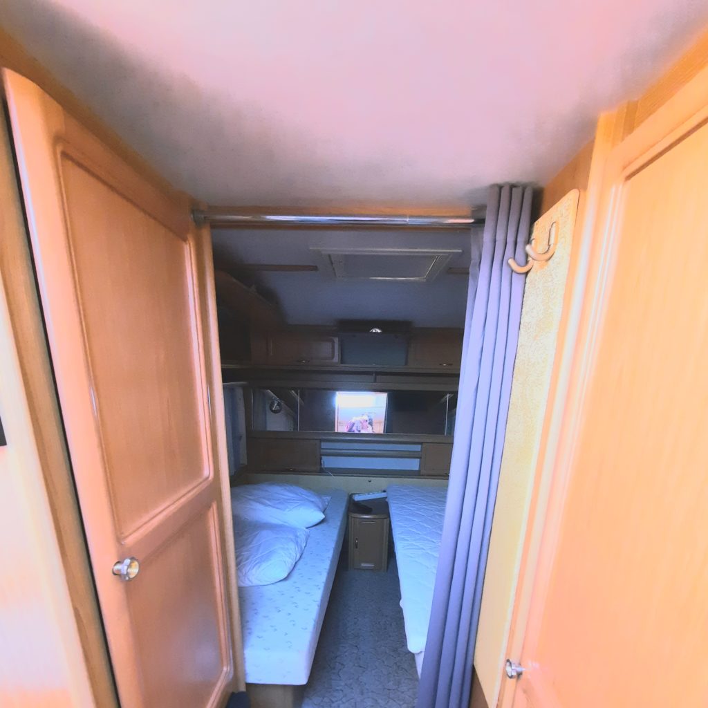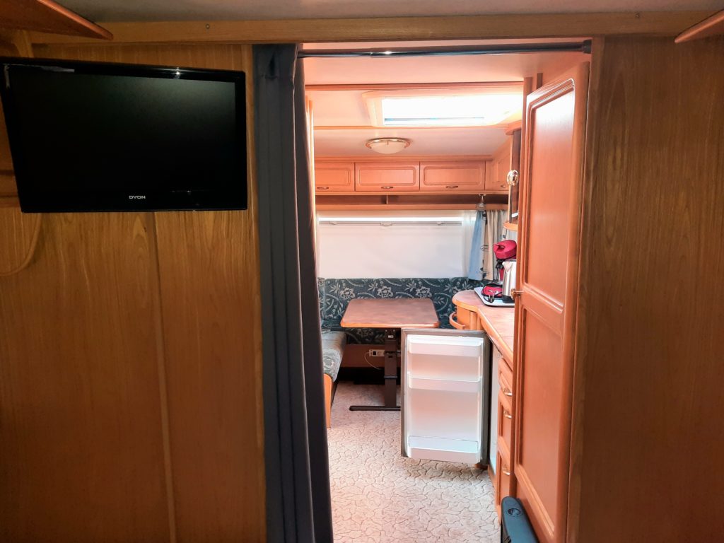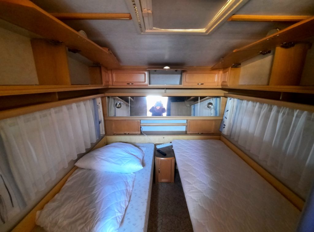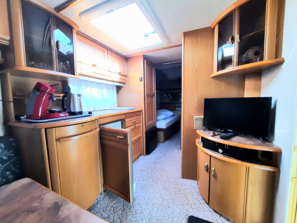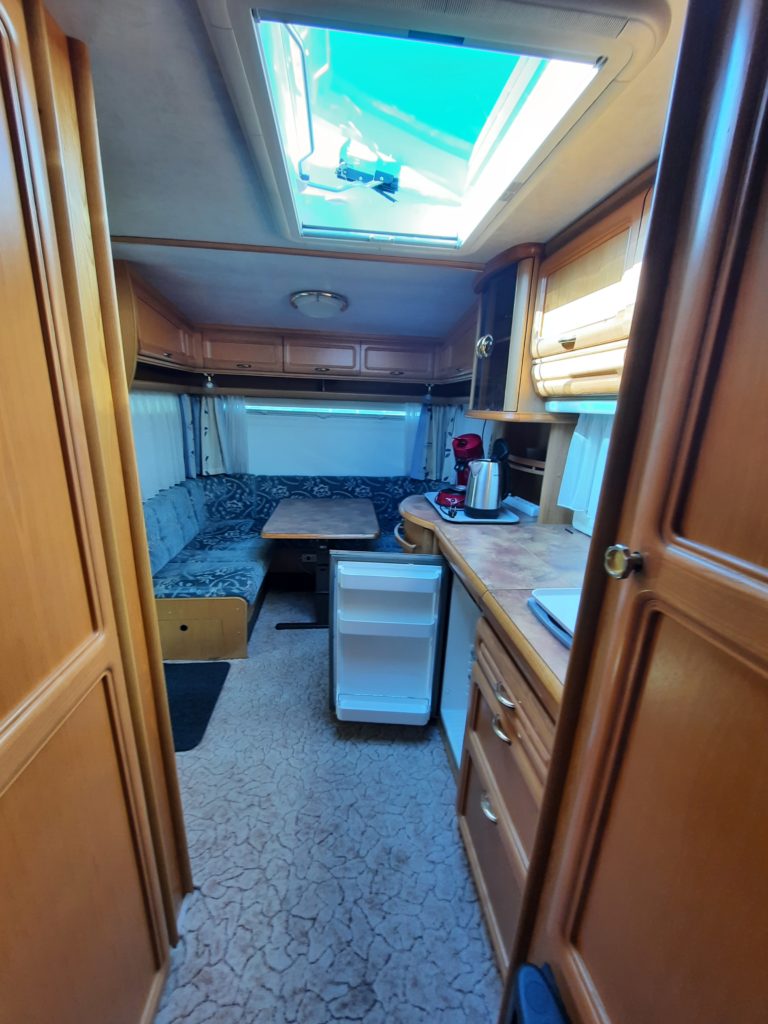 Ausstattung: Für 4 Personen: Doppelbett, Sitzecke (als Bett um baubar), Chemietoilette, Waschgelegenheit, Kühlschrank, Gaskocher, Spülbecken, Besteck, Geschirr, Tassen, Gläser, Töpfe, Schüsseln, usw.